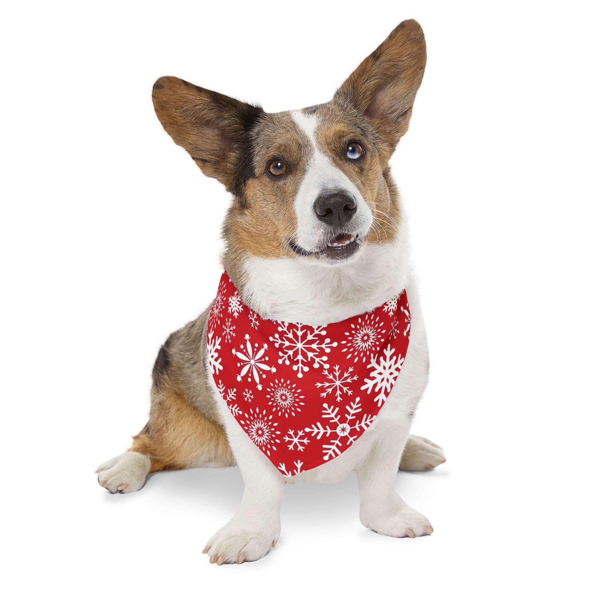 Introduce your furry friend to festive flair with this charming pet bandana collar. Designed with a vibrant all-over print of snowflakes, it's perfect for celebrating the holiday season. This accessory not only looks adorable but also brings joy and style to your pet's wardrobe. Made from durable polyester, it ensures longevity while providing comfort. Whether you're hosting a holiday gathering or going for a winter walk, this bandana collar helps your pet stand out. Ideal for pet owners looking to share their love for their pets during Christmas, New Year celebrations, or winter-themed events. Transform everyday outings into delightful adventures with this must-have pet accessory!