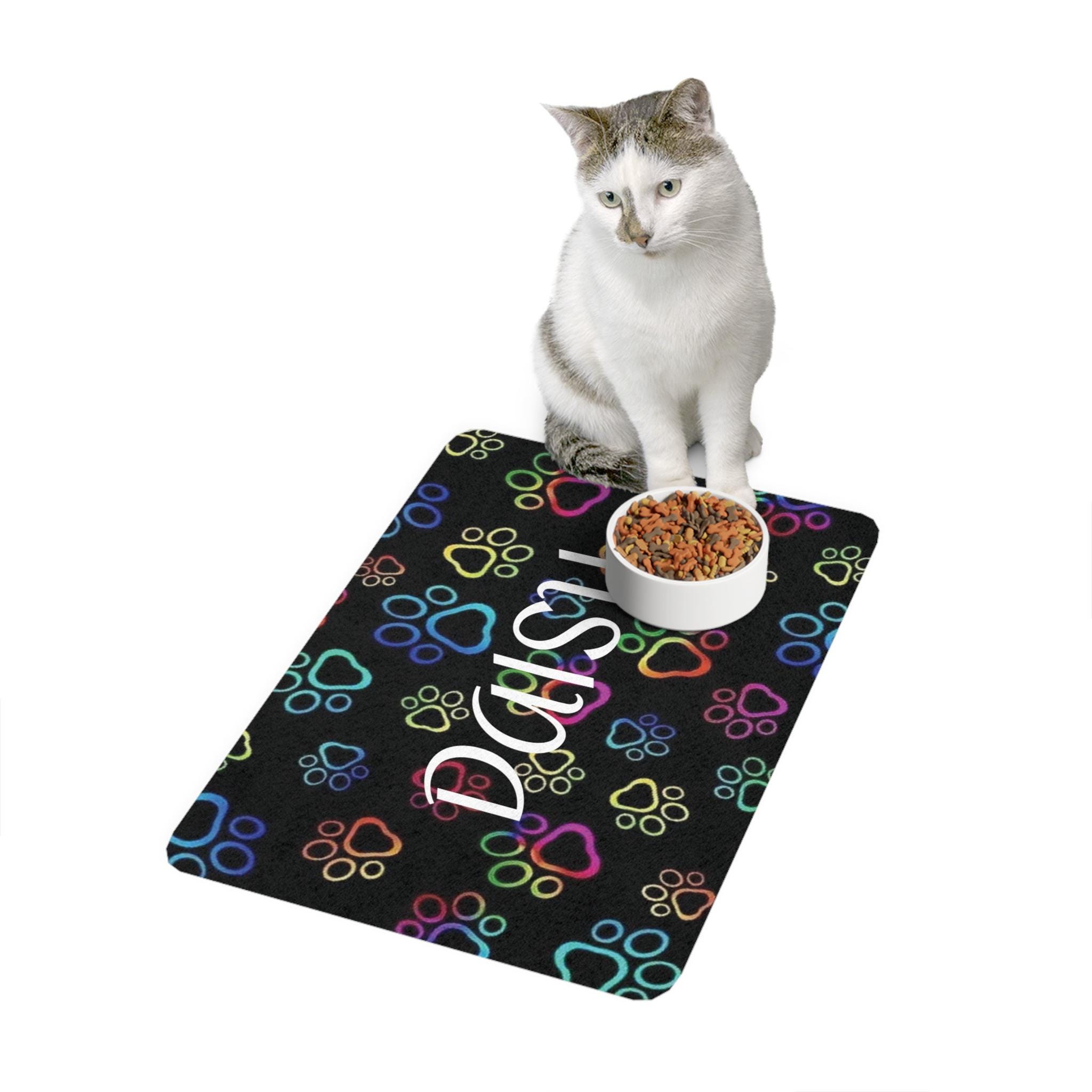 Add a pop of color to your pet's dining space with this vibrant Pet Food Mat. Designed with playful paw prints on a striking black background, it brightens up mealtime and creates a fun atmosphere for your furry friends. The mat's 100% neoprene rubber backing ensures it stays securely in place during every meal, preventing any annoying spills. Perfect for pet owners who value both style and functionality, this mat is ideal for everyday use and special occasions, such as pet birthdays and holidays. Give your beloved companion a touch of personality while keeping their feeding area neat and tidy!