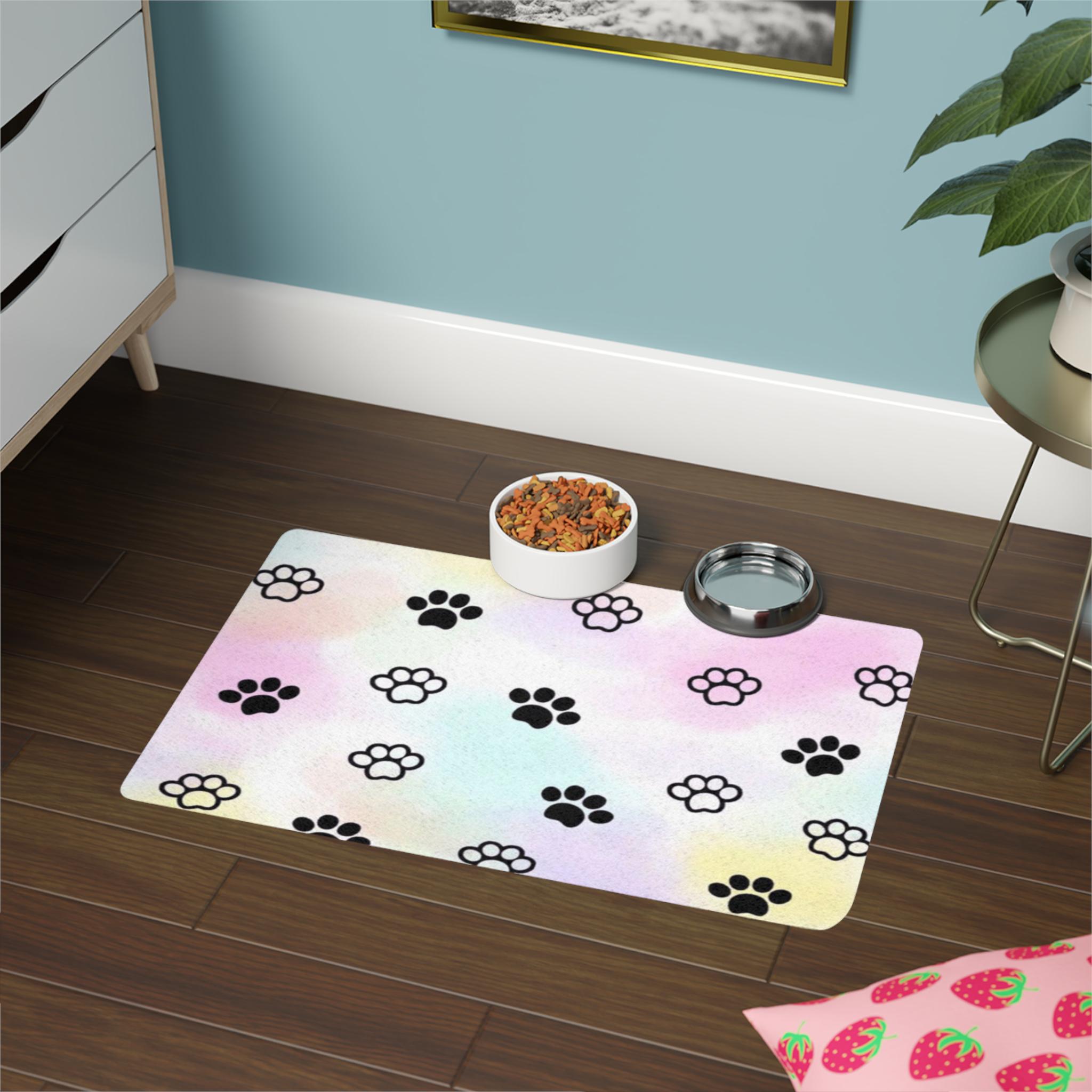 Bring a sprinkle of joy into your pet's mealtime with this adorable pet food mat. Its vibrant colors and playful paw print design create a delightful atmosphere, making feeding time a fun experience. Crafted to fit seamlessly into any pet lover's home decor, this mat not only protects your floors but adds a charming touch. Perfect for dog and cat owners, this mat is an excellent addition for pet celebrations, housewarming gifts, or simply treating your furry friend!