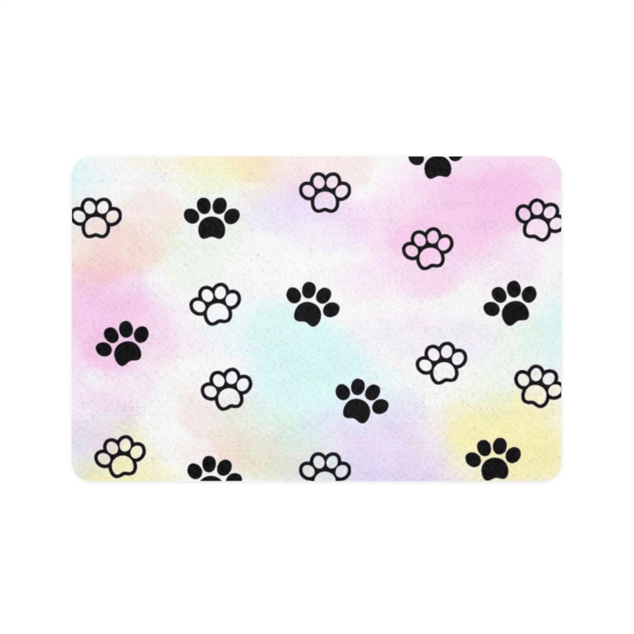 Product features - 100% durable polyester front that retains its shape and dries quickly - Anti-slip backing made of neoprene rubber keeps the mat securely in place - Vibrant colors thanks to advanced printing techniques for an eye-catching look - One-sided print design showcases a fun, playful paw print pattern - Edge-to-edge full-color surface ensures a complete and attractive design.