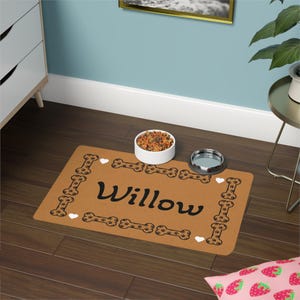 Product features - 100% polyester front for durability and quick drying - Anti-slip neoprene rubber backing prevents movement - Vibrant colors from modern printing techniques - Edge-to-edge full color design for a striking look - One size fits all pets, suitable for various feeding habits