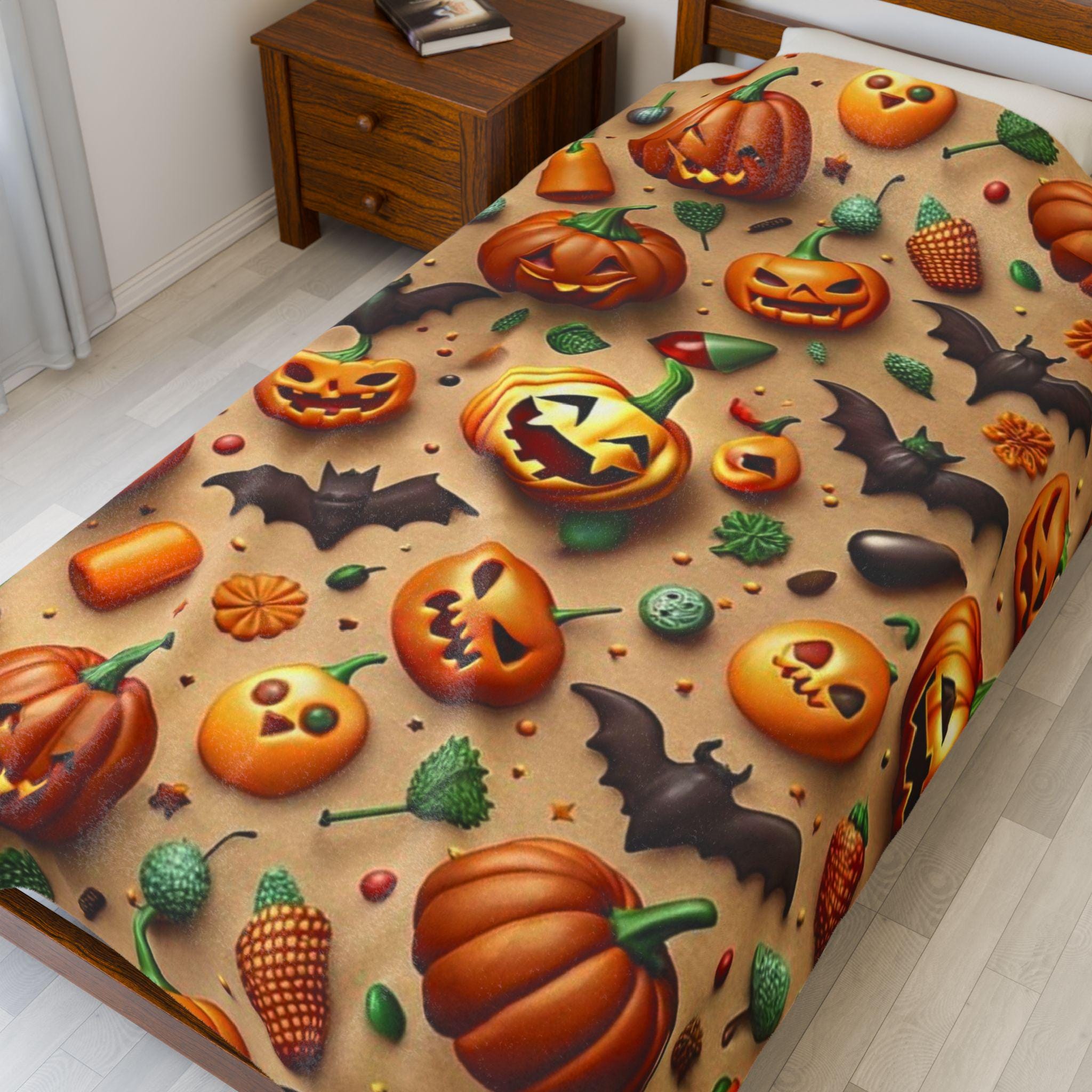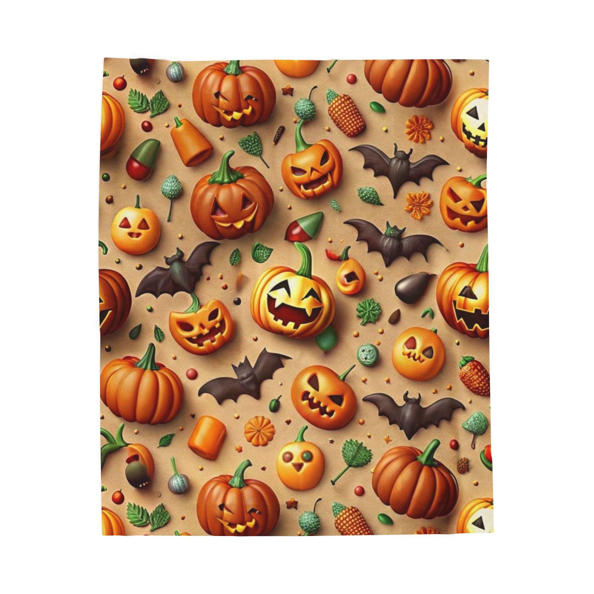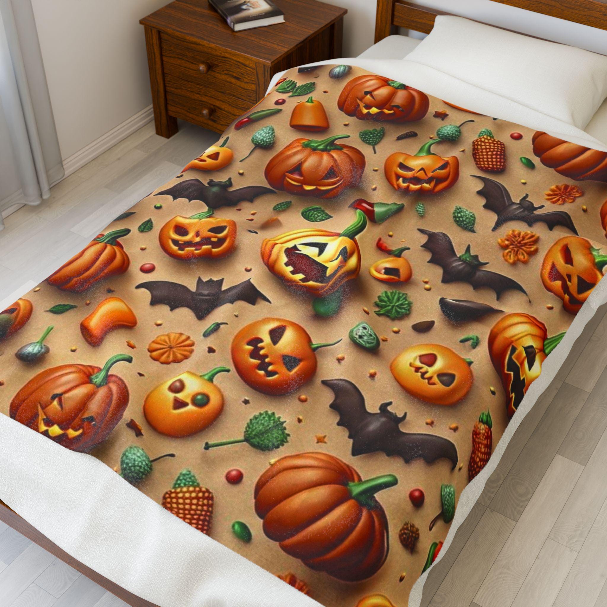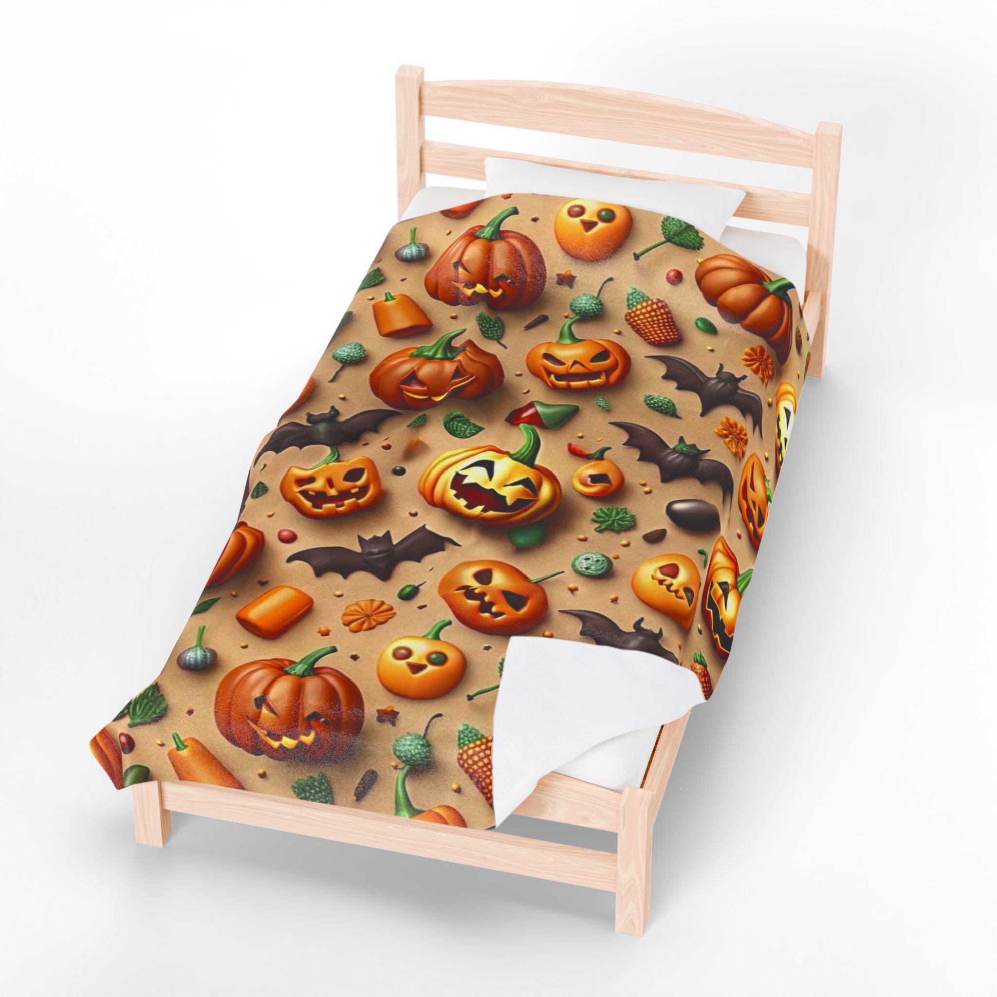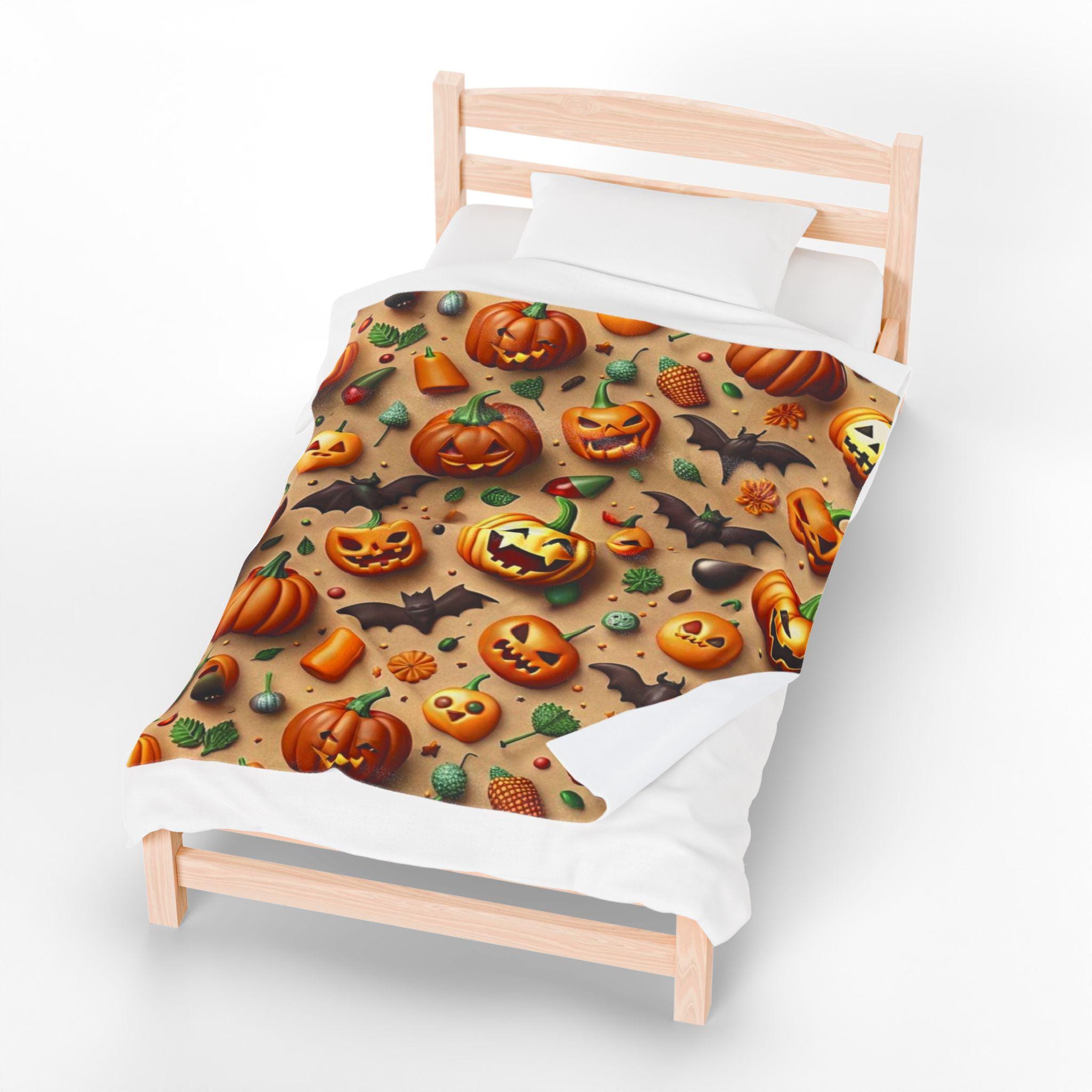 Wrap yourself in coziness with this velveteen plush blanket, perfect for snuggling on chilly nights. Featuring a delightful Halloween-themed design, it brings a festive flair to your home decor. Ideal for movie nights, gatherings, or simply lounging, this blanket adds warmth and style to any occasion. It's tailored for adults who appreciate comfort and seasonal charm. Use it to elevate your holiday celebrations or as a thoughtful gift for Halloween enthusiasts.