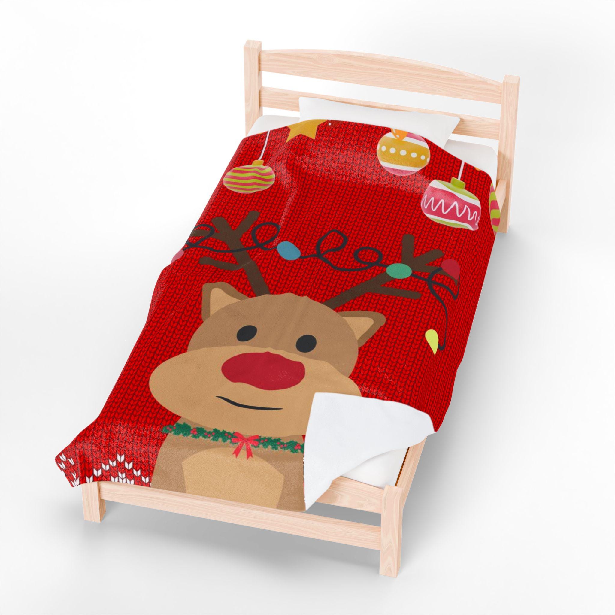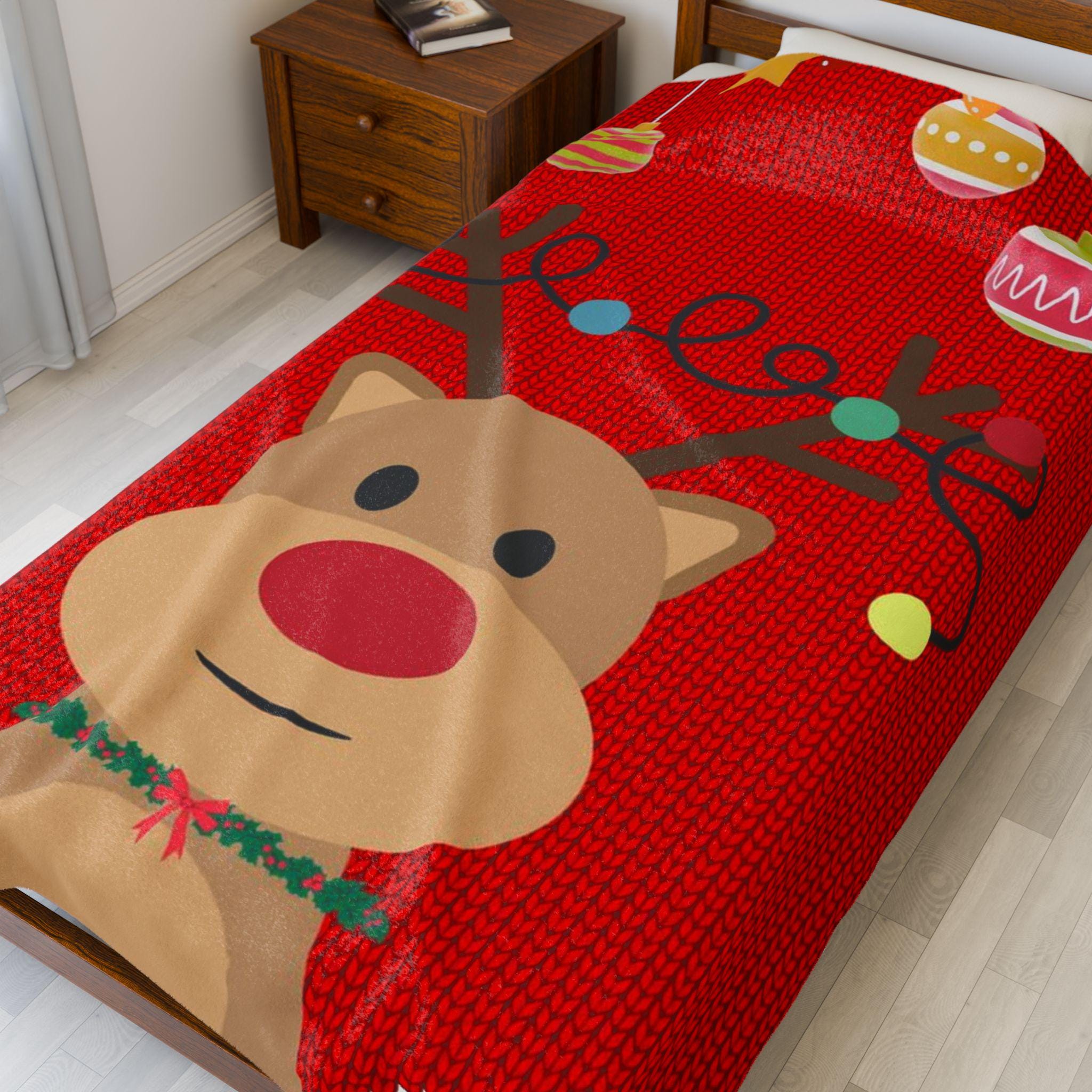 Wrap yourself in warmth and cheer with this enchanting Velveteen Plush Blanket. Perfect for cozy evenings at home, this blanket brings a whimsical touch to any space, instilling a sense of joy and comfort. Its playful reindeer design makes it an ideal gift for children and families, adding a festive flair to holiday gatherings and celebrations. Whether you're curling up with a good book or decorating for a seasonal celebration, this blanket is perfect for Christmas, family movie nights, and chilly evenings. Animal lovers and festive decor enthusiasts alike will appreciate its soft feel and vibrant colors, creating a warm atmosphere in any room.