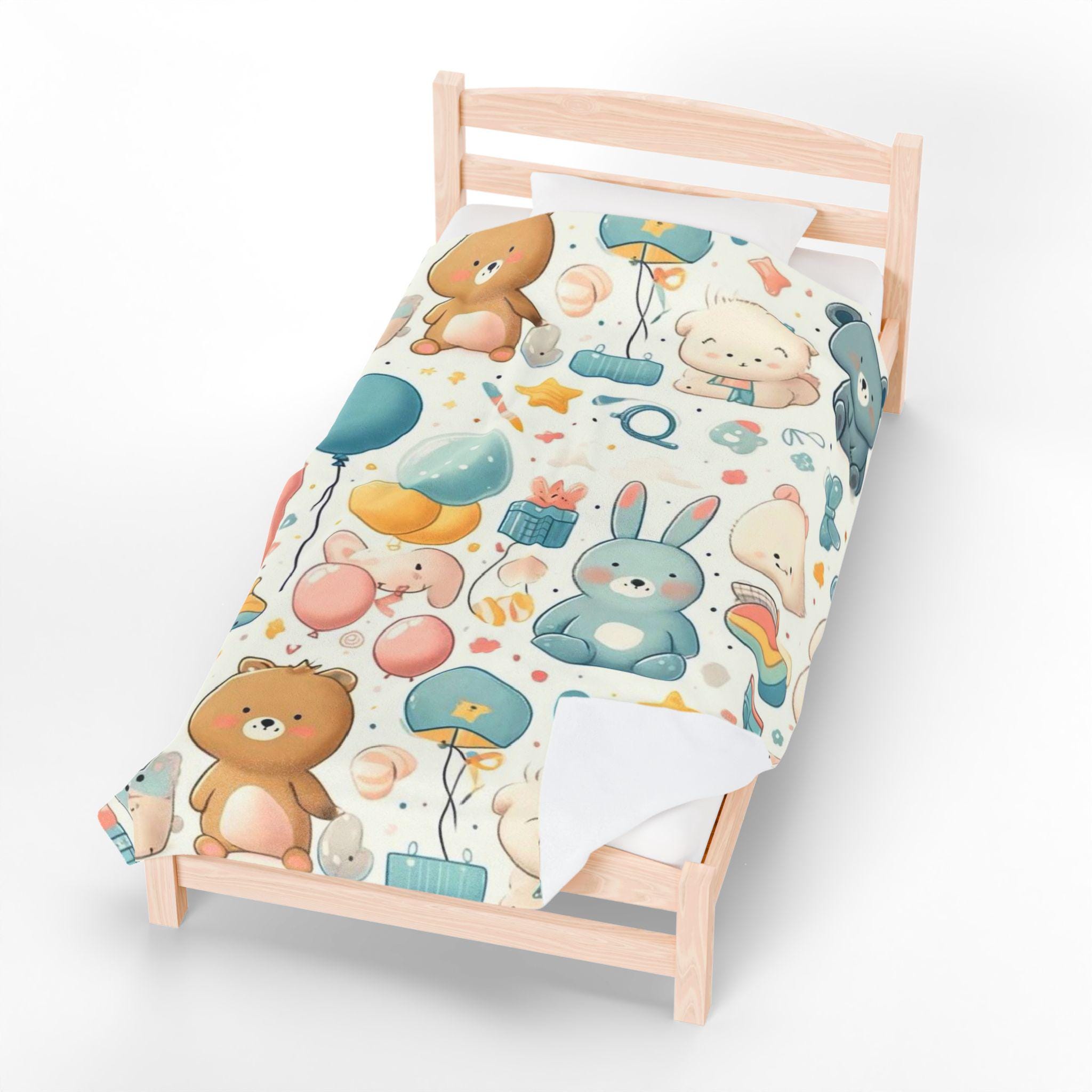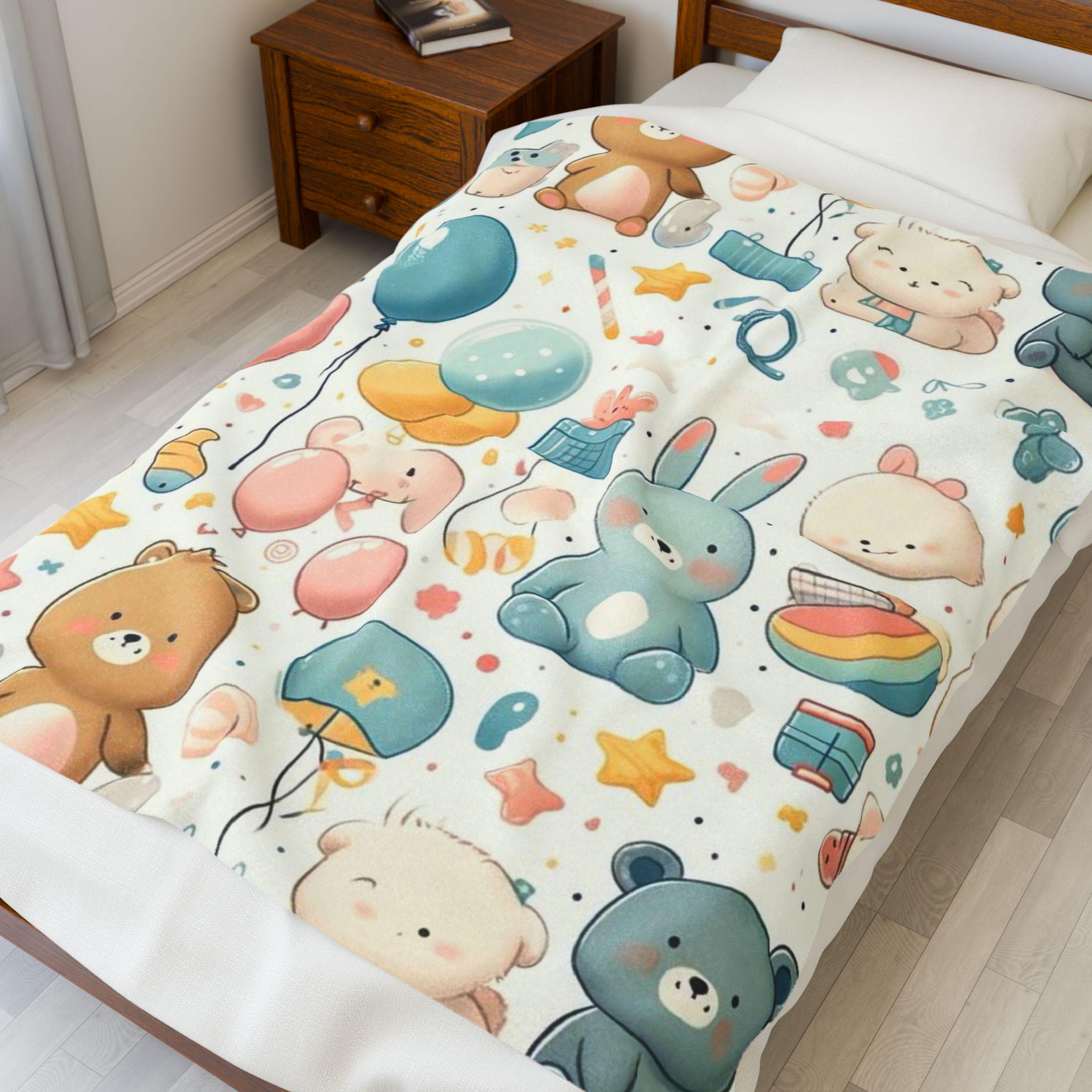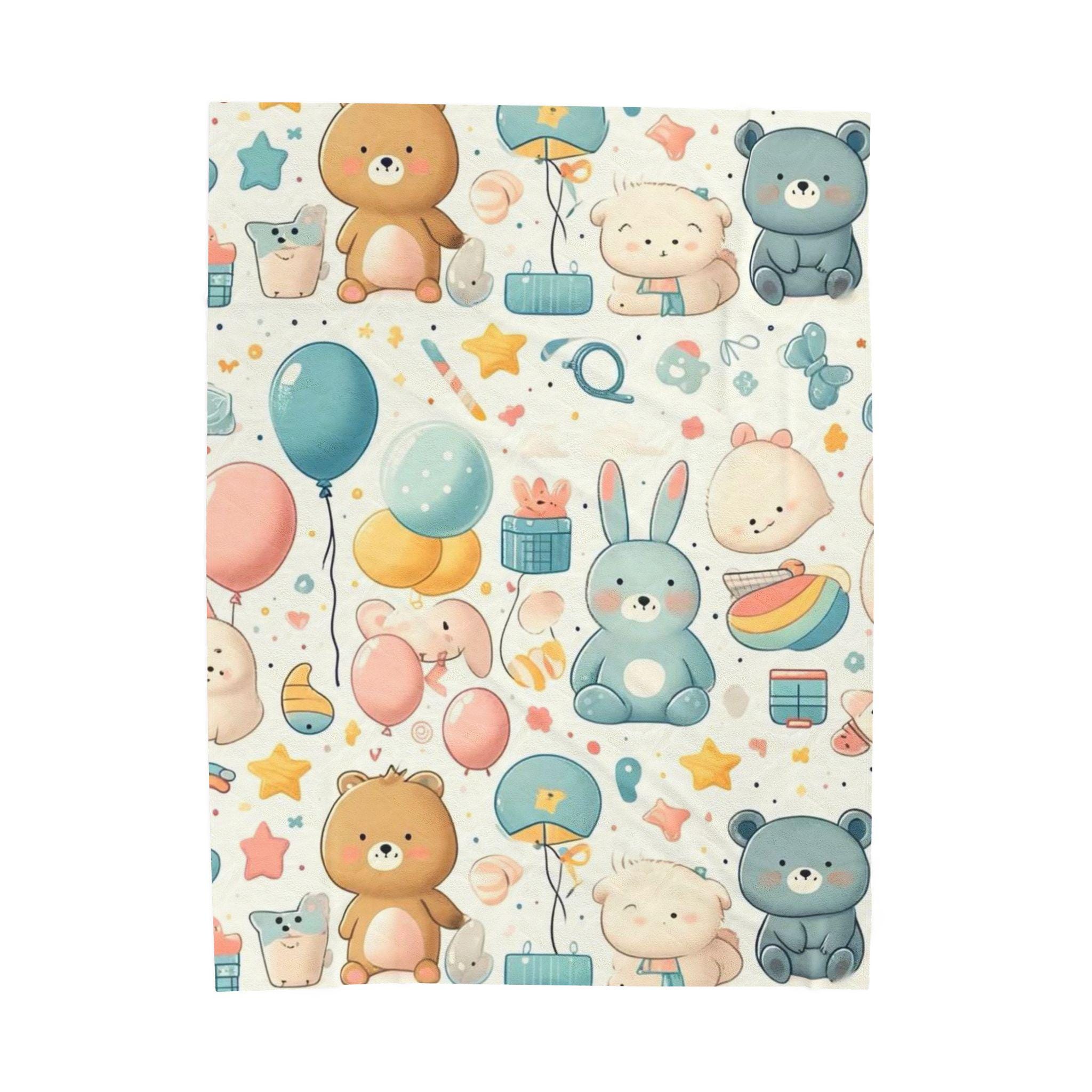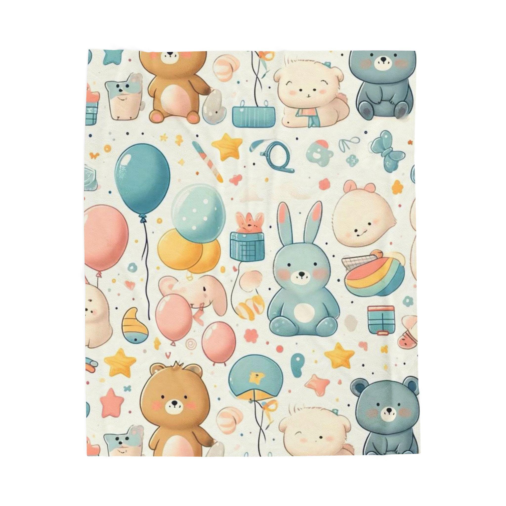 Embrace warmth and comfort with this delightful Velveteen Plush Blanket. Perfect for cozy nights in or snuggling up on the couch while watching your favorite movies, this blanket creates a soft, inviting atmosphere. The vibrant, playful design featuring adorable animals and balloons adds a cheerful touch to any living space, making it an excellent addition for both children and adults. Ideal for nurseries, playrooms, or as a thoughtful gift for baby showers, birthdays, and other special occasions, this blanket is perfect for those who appreciate quality and comfort in their home decor. Whether you're wrapping up for a chilly evening or styling your child's bedroom, this blanket is sure to bring joy and warmth into your life.