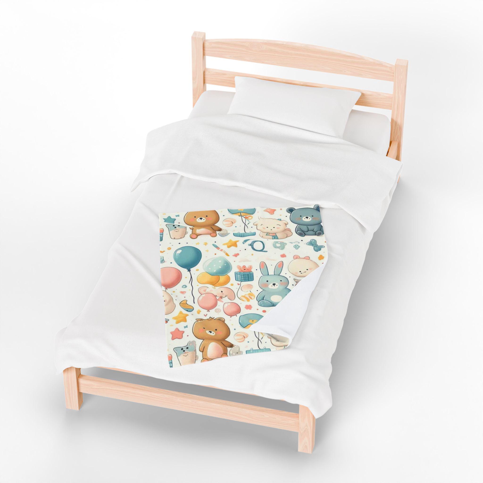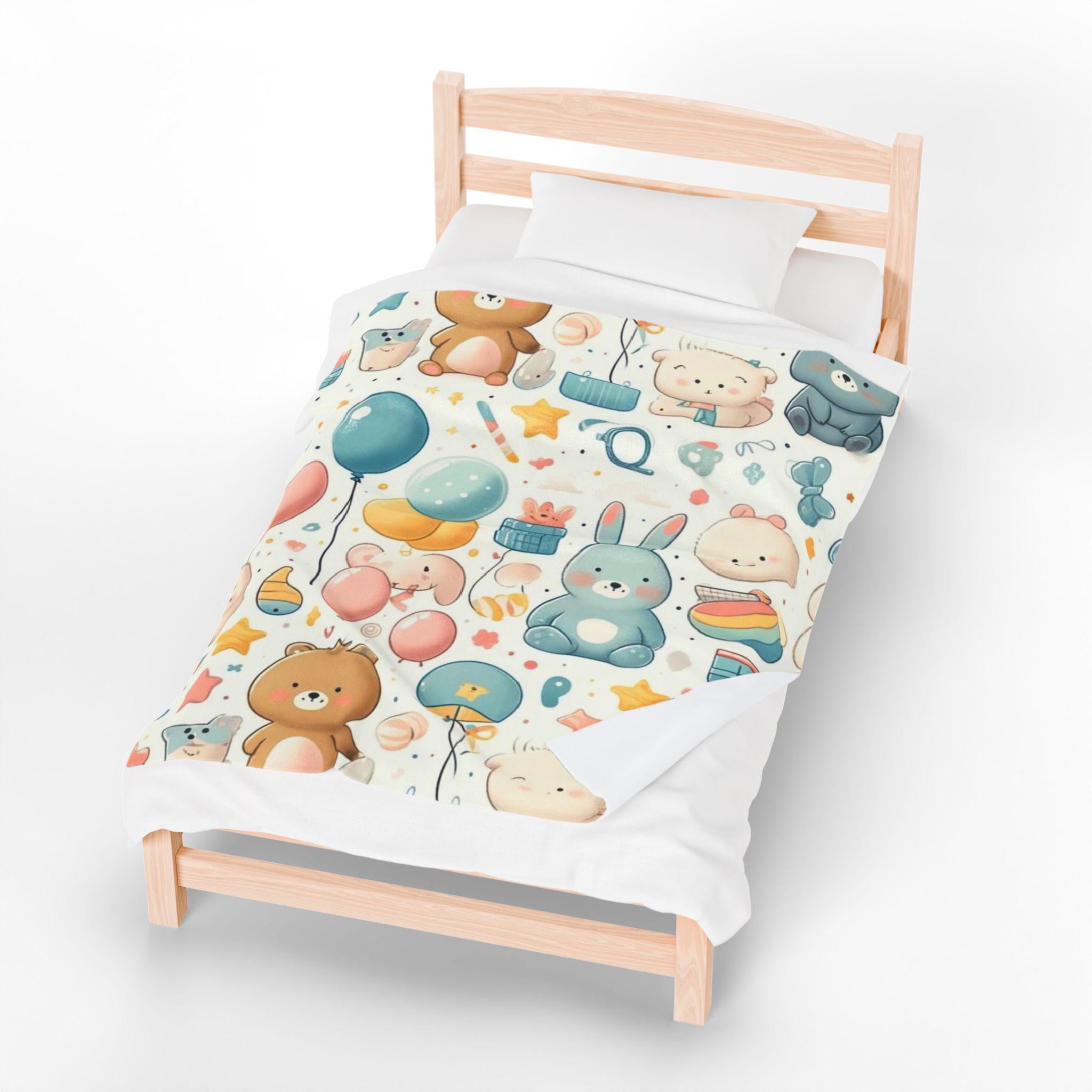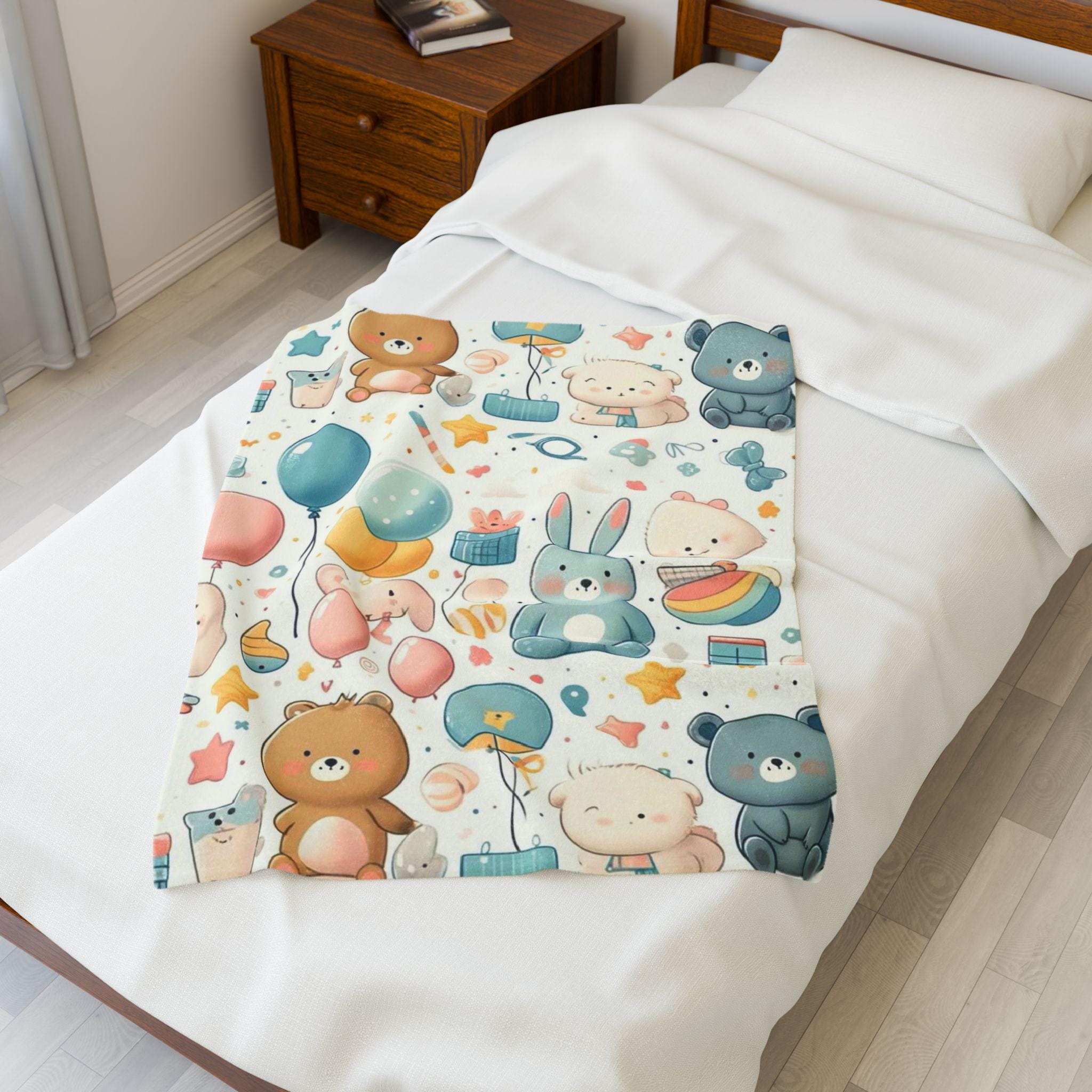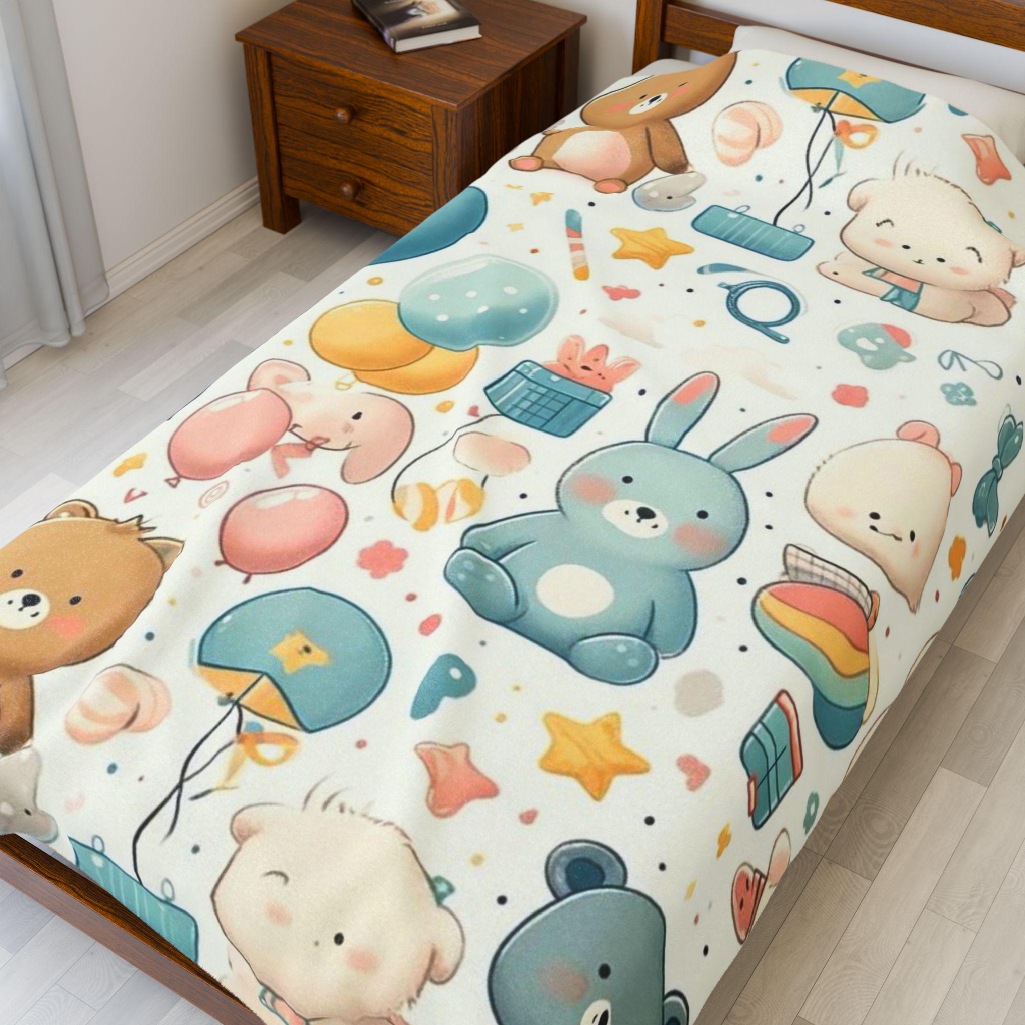 Embrace warmth and comfort with this delightful Velveteen Plush Blanket. Perfect for cozy nights in or snuggling up on the couch while watching your favorite movies, this blanket creates a soft, inviting atmosphere. The vibrant, playful design featuring adorable animals and balloons adds a cheerful touch to any living space, making it an excellent addition for both children and adults. Ideal for nurseries, playrooms, or as a thoughtful gift for baby showers, birthdays, and other special occasions, this blanket is perfect for those who appreciate quality and comfort in their home decor. Whether you're wrapping up for a chilly evening or styling your child's bedroom, this blanket is sure to bring joy and warmth into your life.