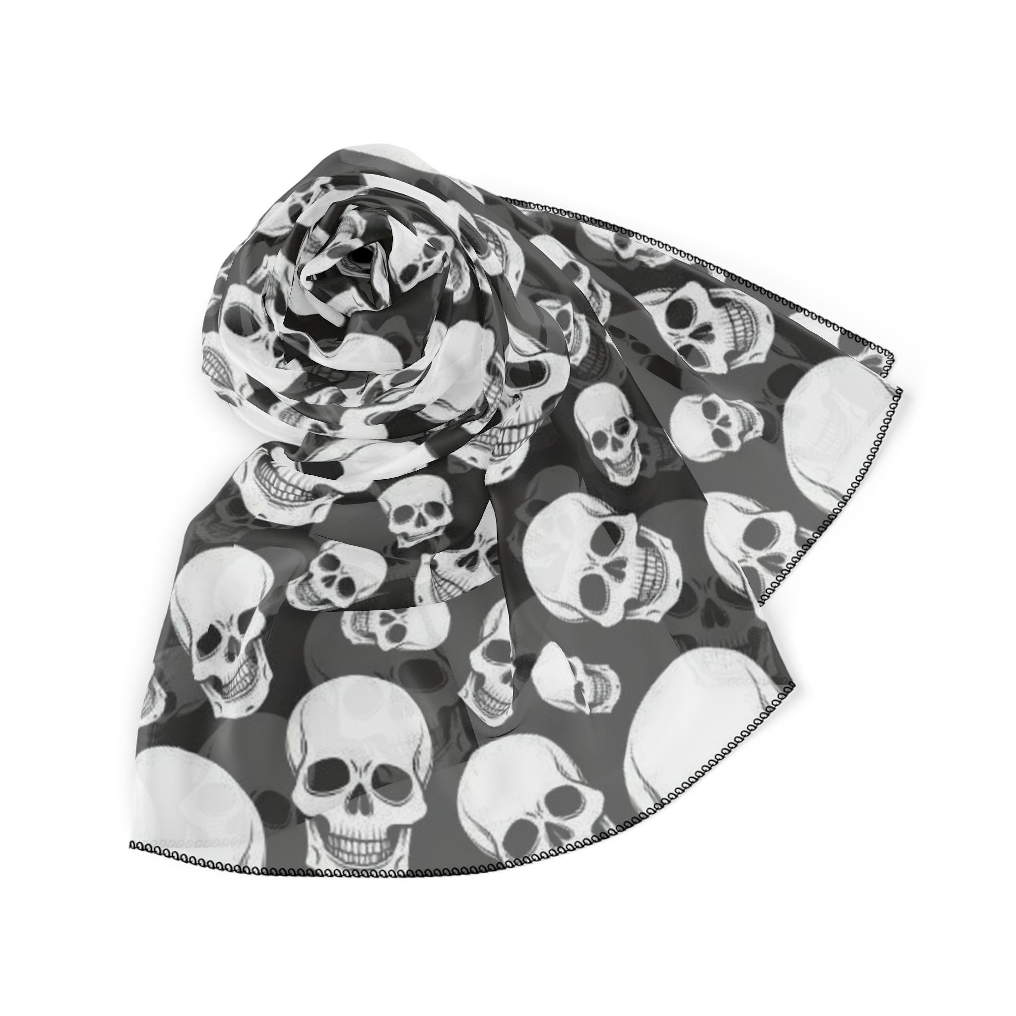 Elevate your style with this unique poly scarf, perfect for those who dare to stand out. Its light and airy design drapes beautifully around your neck, providing a comfortable and stylish accessory for any occasion. The vibrant colors and striking skull pattern add a bold touch to any outfit, making it ideal for goth enthusiasts or anyone looking to add an edge to their wardrobe. Whether you're attending a music festival, Halloween party, or just want to brighten up a dull day, this scarf is versatile enough to be worn year-round. It's a perfect gift for birthdays, holidays, or just because!