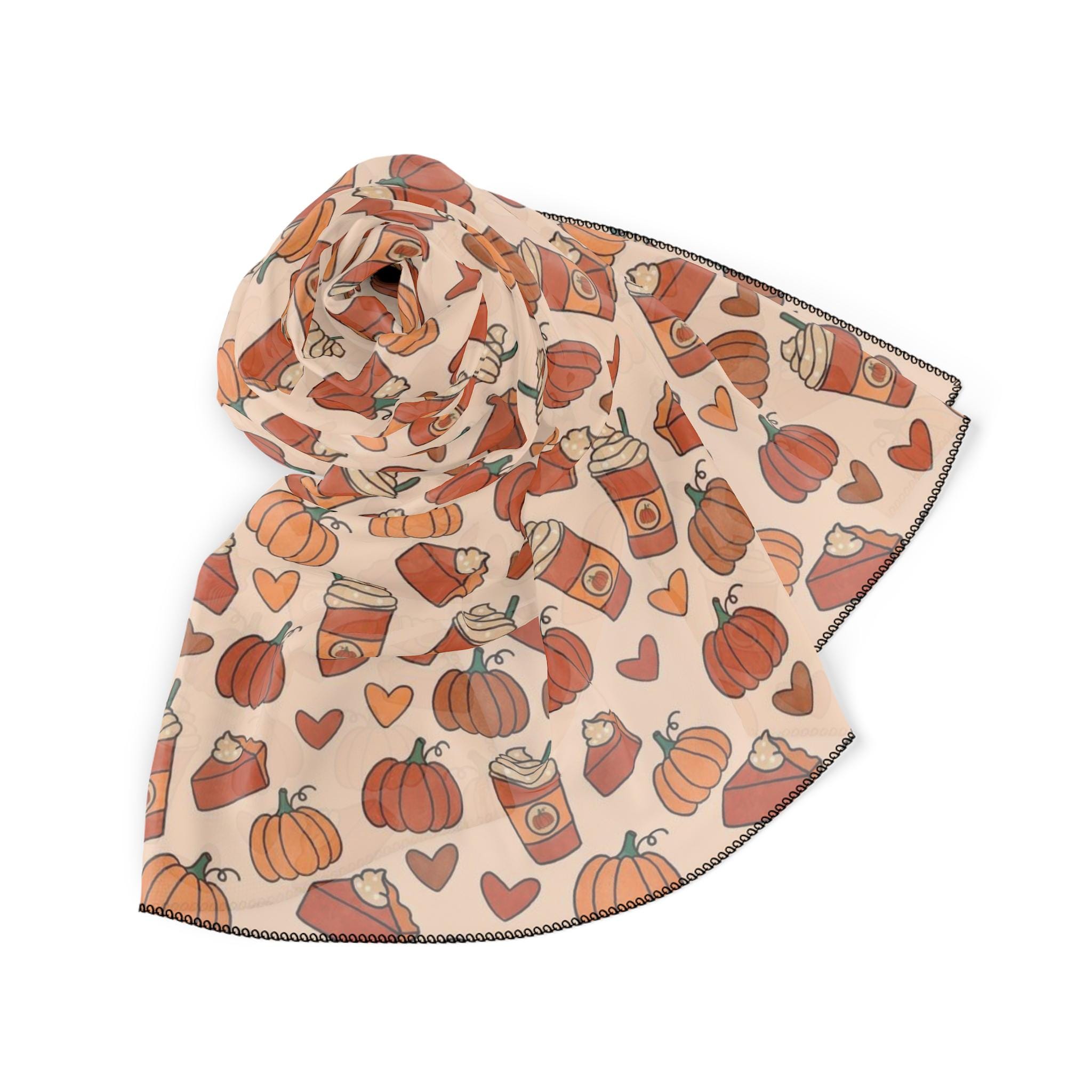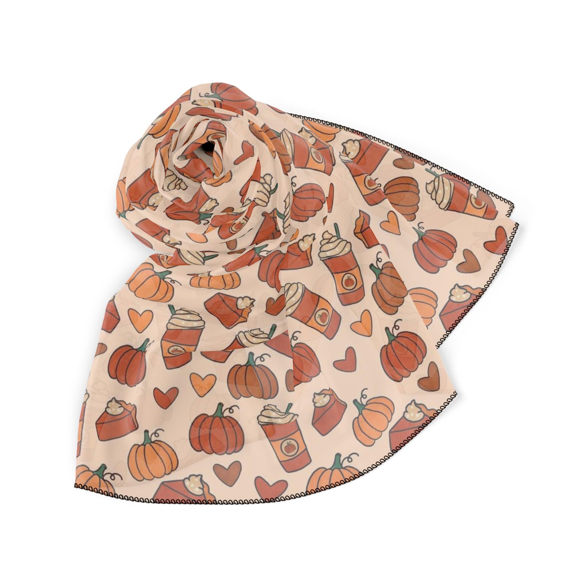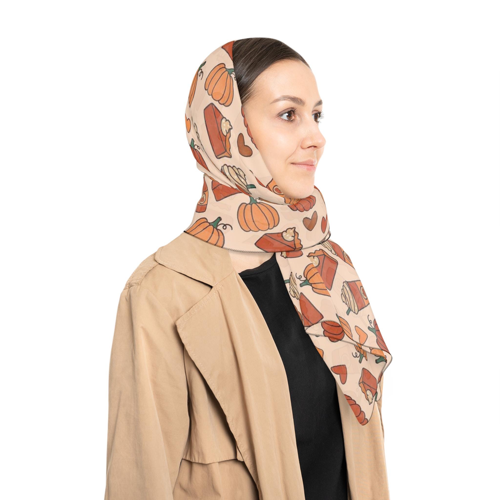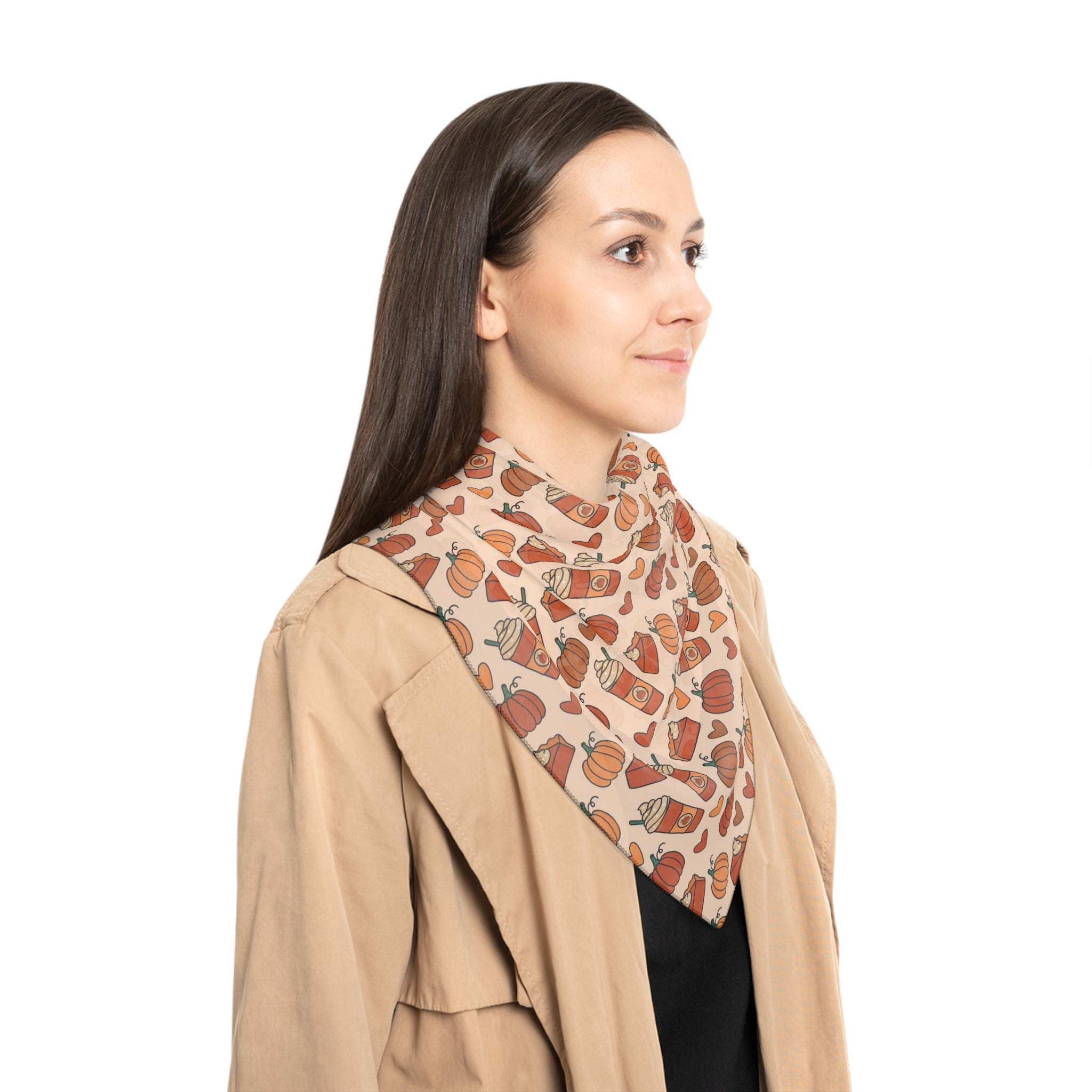 This lightweight polyester scarf is perfect for adding a touch of whimsy to your outfit. With its vibrant colors and playful pumpkin and coffee cup design, it brings a joyful vibe that brightens any autumn day. Ideal for fashion-forward individuals who love to express their unique style, this scarf can be seamlessly integrated into your daily wardrobe or used to celebrate the cozy fall season. It's the perfect accessory for gatherings, Thanksgiving celebrations, or a casual day out with friends. Treat yourself or gift it to a loved one who loves fall festivities and creative fashion choices!