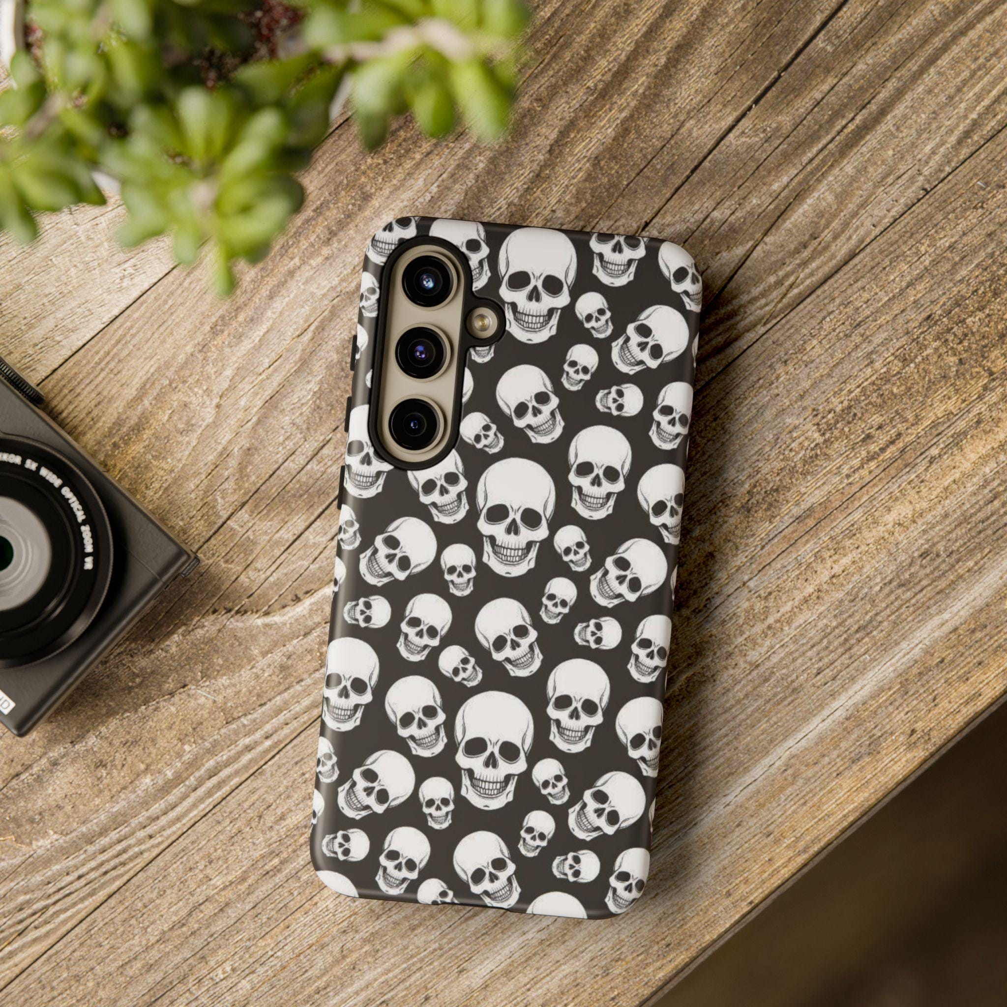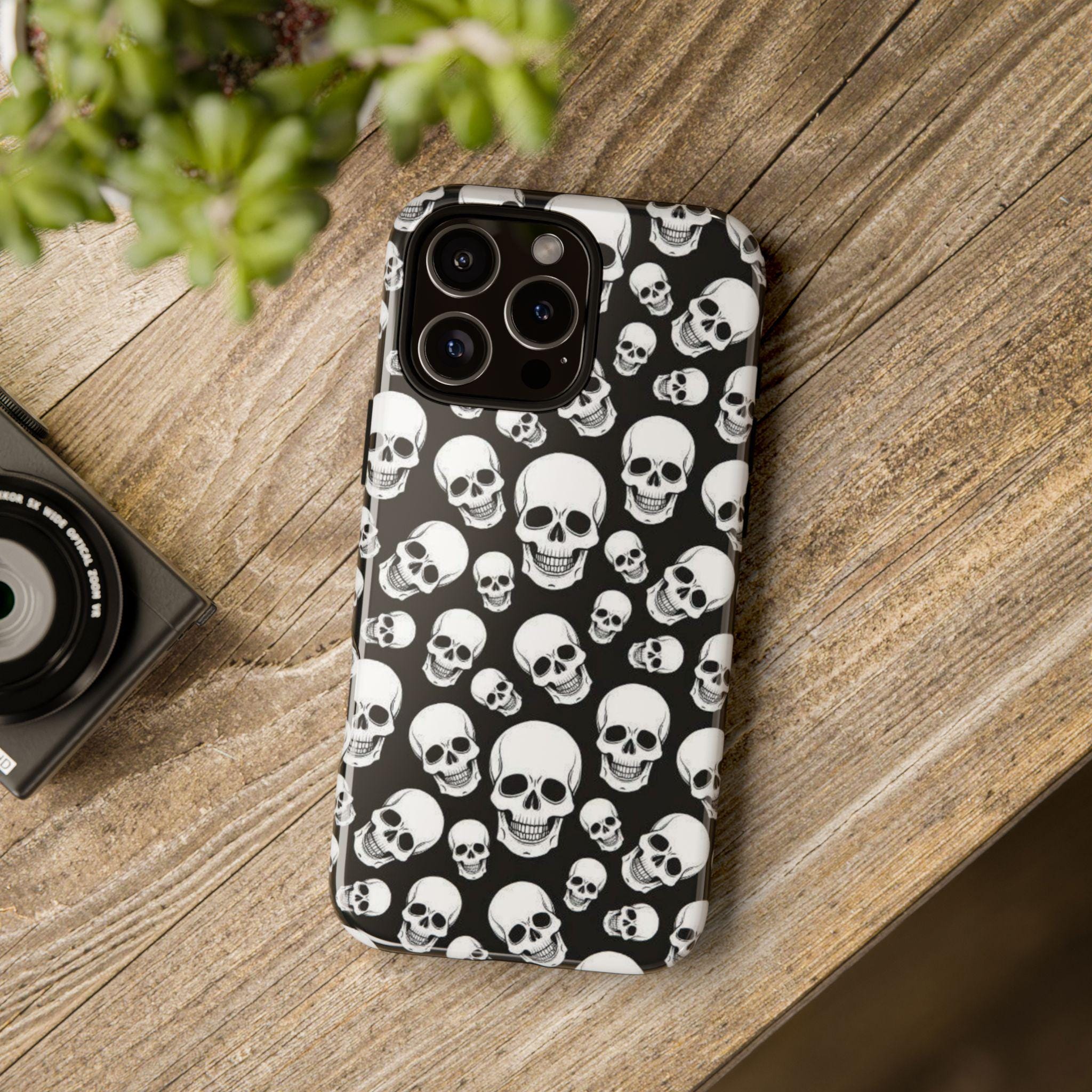 Introducing a bold and edgy phone case that perfectly combines style with functionality. This phone case, adorned with a striking skull pattern, is not just a protective accessory; it's a statement piece that showcases your unique personality. Designed for those who appreciate a blend of toughness and individuality, this product is perfect for young adults, trendsetters, and anyone looking to make their mark. Whether you're preparing for Halloween, celebrating a punk rock event, or just expressing your love for all things alternative, this case fits seamlessly into your lifestyle. Lightweight yet durable, it offers peace of mind knowing your phone is safe from drops and daily wear. A perfect gift for birthdays or just-because occasions, it caters to the rebellious spirit in everyone.