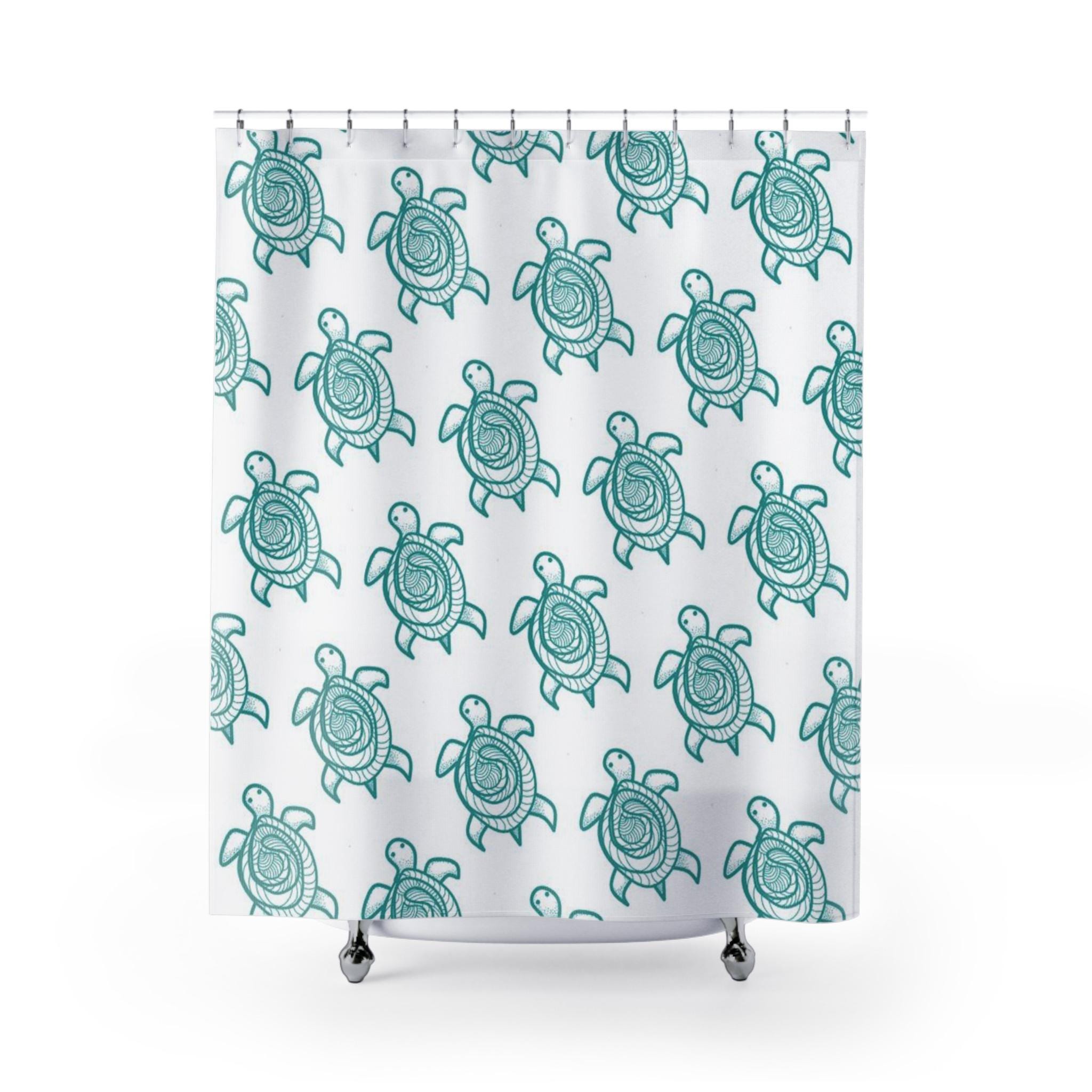 Product features - 100% polyester — durable, shape-retaining, and quick-drying - One-sided print with crisp, hand-drawn sea turtle motif - Twelve top buttonholes for standard shower hooks (hooks not included) - Pre-constructed item with size variance of +/- 2 inches - Adults only; easy-care fabric made for everyday bathroom use