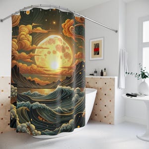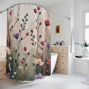 Product features - 100% polyester fabric — durable, shape-retaining, quick-drying - One-sided watercolor shell print for a soft, hand-painted look - Twelve top buttonholes for standard shower hooks (hooks not included) - Pre-constructed size with +/- 2" variance — ready to hang - Adult use; lightweight and easy to care for