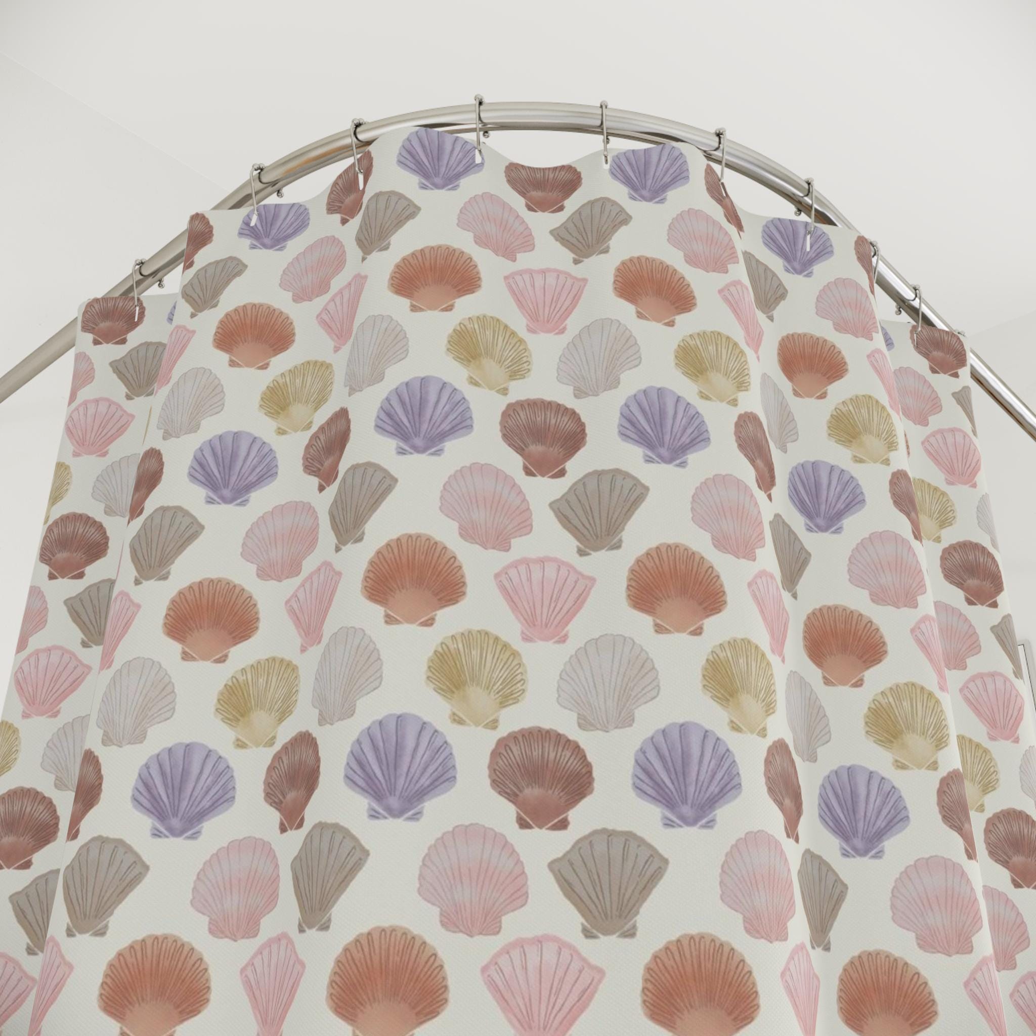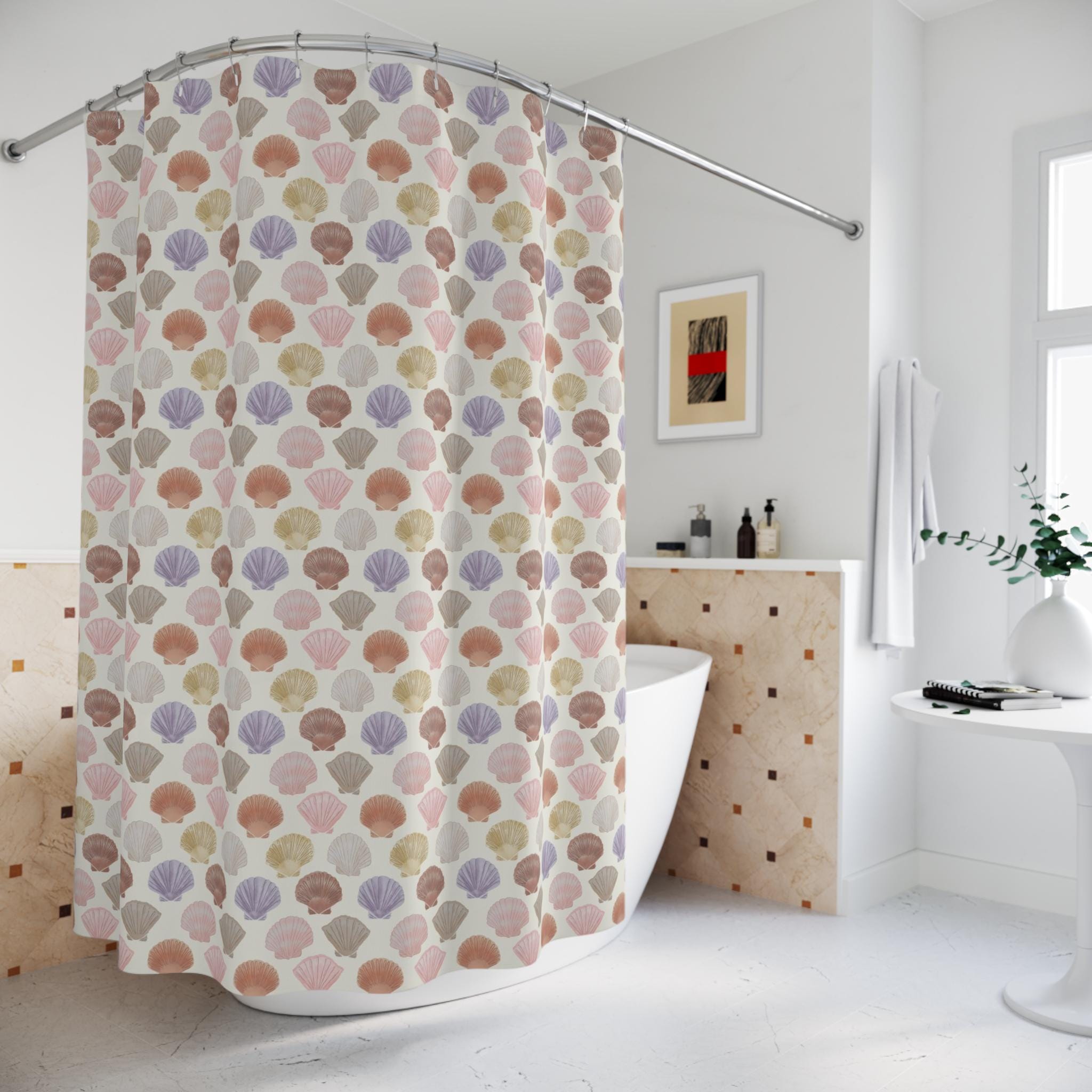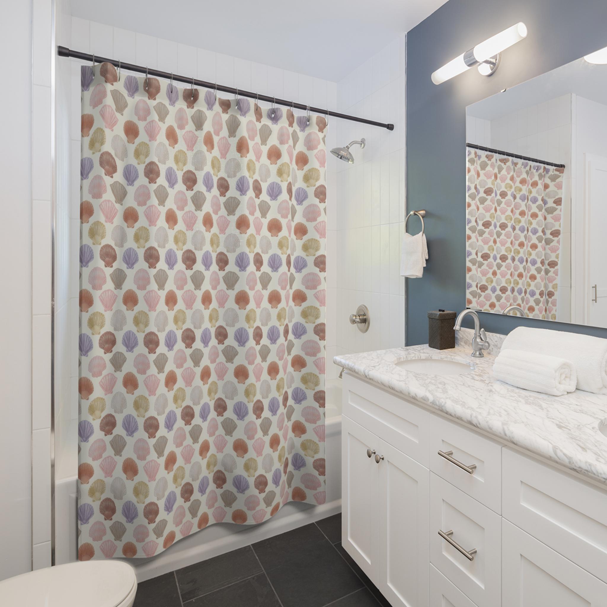 Bring a soft, seaside whisper into your bathroom with this watercolor shell shower curtain. Gentle scallop shapes in muted blush, lavender, seafoam and sandy taupe drift across a creamy background, creating a calm, collected mood that feels like a slow walk along the tide line. Lightweight and quick-drying polyester keeps the print lively while resisting wrinkles; The one-sided watercolor pattern reads like a hand-painted wallpaper, turning your daily routine into a small, restorative moment. Hang it on a curved or straight rod, let the colors settle around your space, and enjoy a subtle coastal vibe that's relaxed, feminine, and quietly curated.