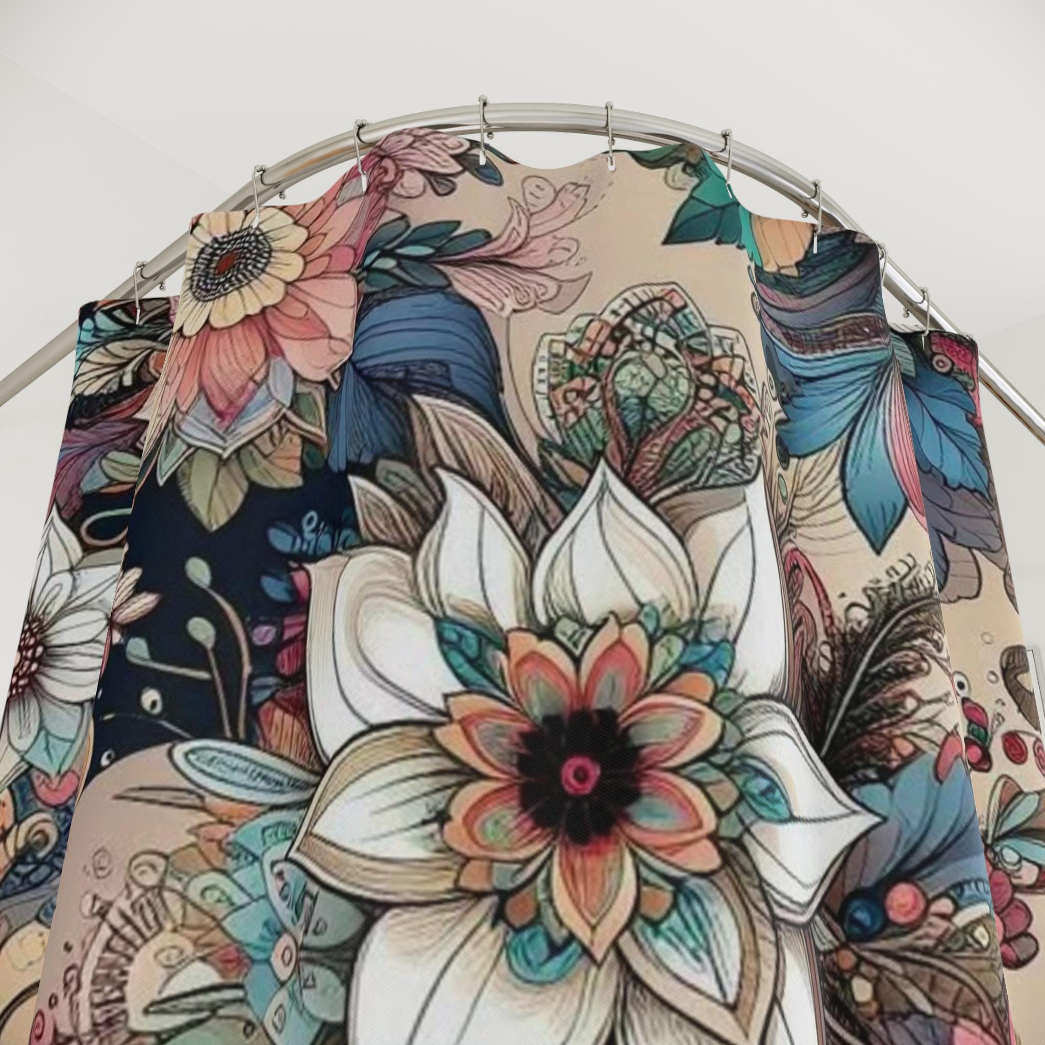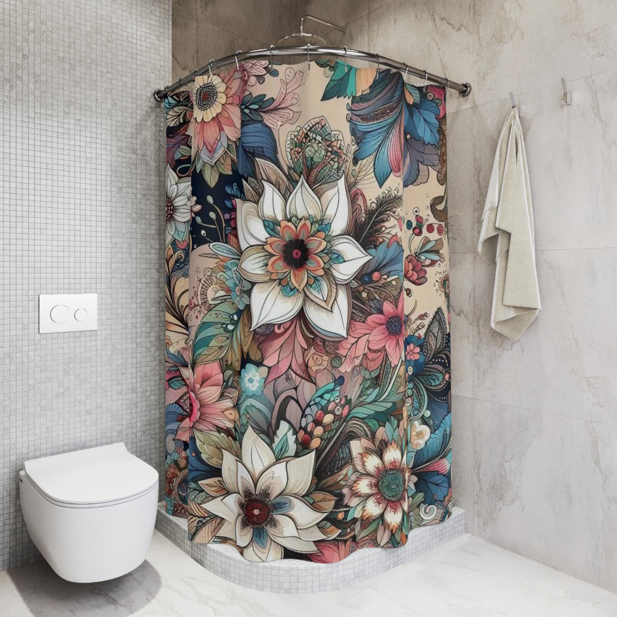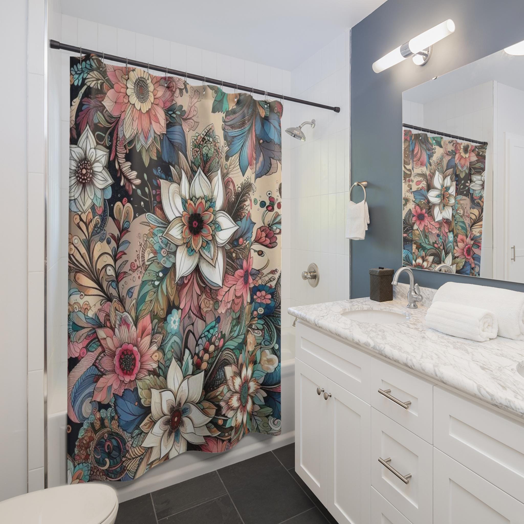 Product features - 100% polyester fabric — durable, shape-retaining, and quick-drying - One-sided high-detail print with rich, layered floral artwork - Twelve top buttonholes for standard shower hooks (hooks not included) - Pre-constructed sizing with slight variance (±2") - Designed for adult use