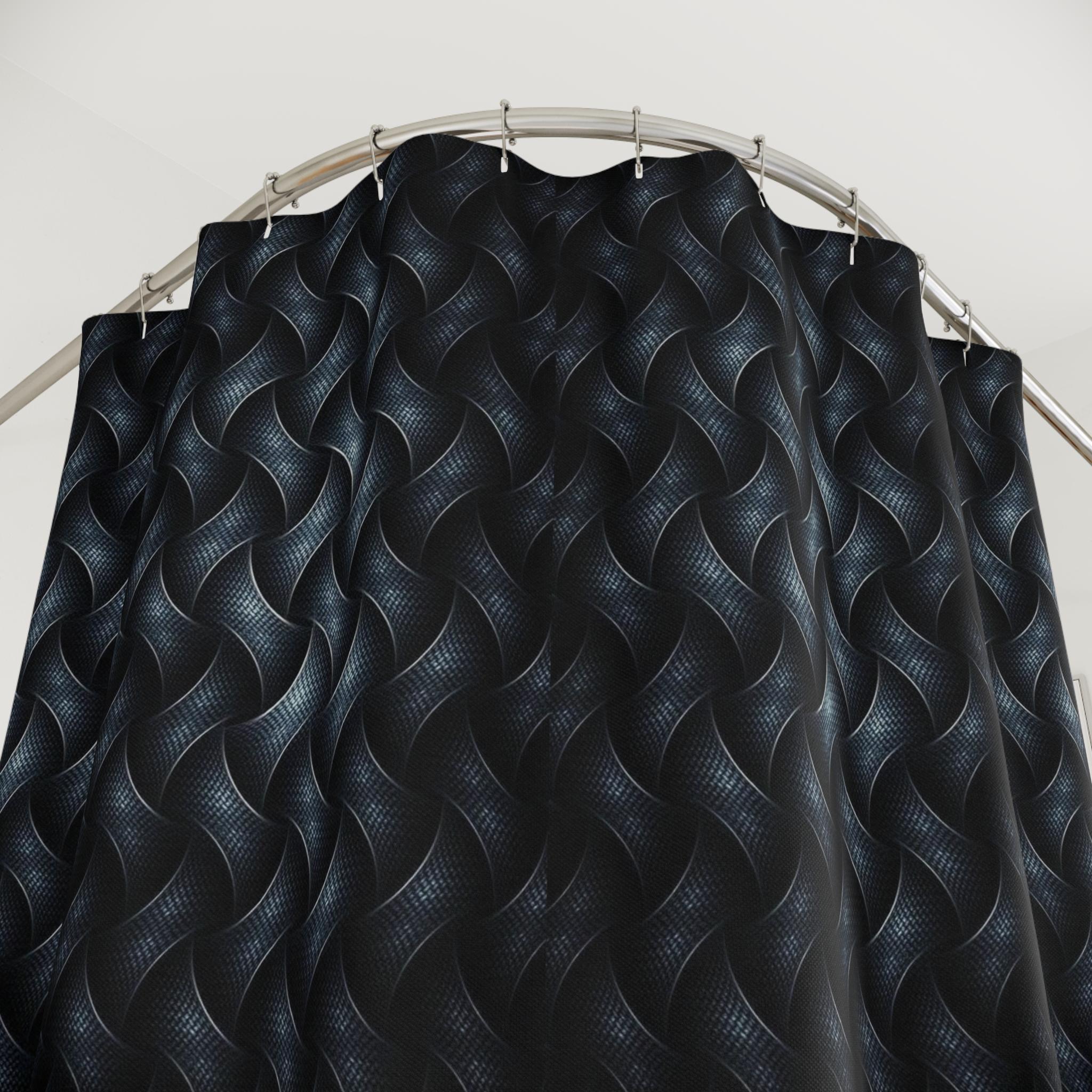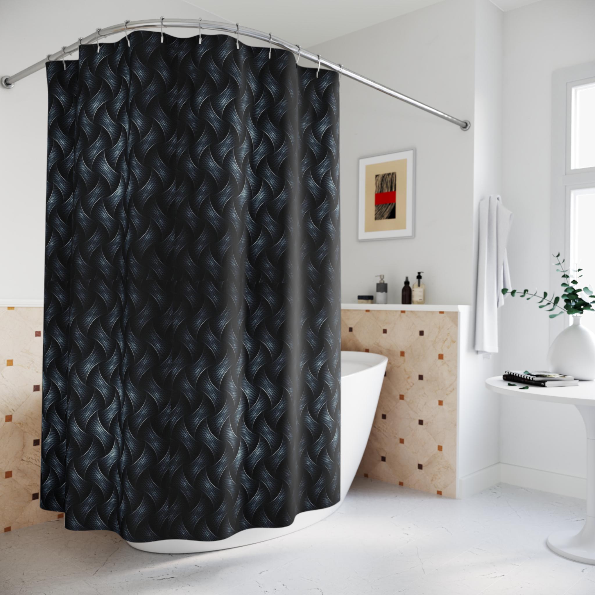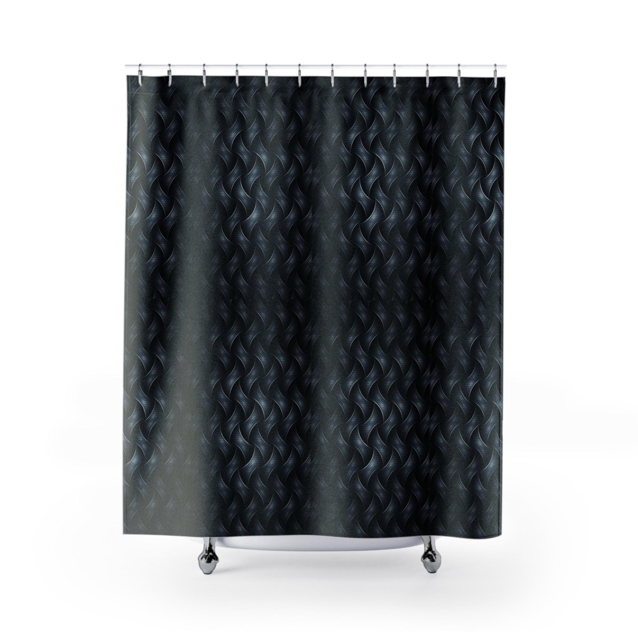 Wrap your bathroom in moody texture with this sculptural shower curtain. Deep charcoal and ink-blue tones weave together in a braided, almost liquid pattern that reads like hand-carved stone or satin ropes. The matte-to-sheen contrast gives depth when light hits it — mornings feel quieter, nights feel cocooned. This curtain brings tactile drama without heavy fuss: it hangs easily from standard hooks and dries quickly, so the space stays fresh. It suits someone who lives for layered interiors, slow mornings, and bathroom details that feel considered rather than loud.