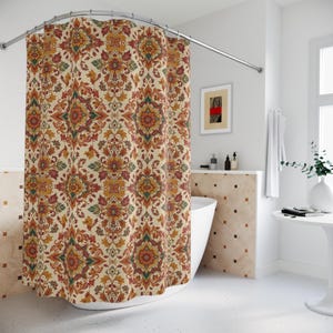 Product features - 100% polyester for durability and quick-drying performance - One-sided print with vivid, knit-inspired snowflake pattern - Twelve buttonholes at top for standard shower hooks (hooks not included) - Pre-constructed size with possible variance of +/- 2 inches - Adult-use design; sturdy, shape-retaining fabric